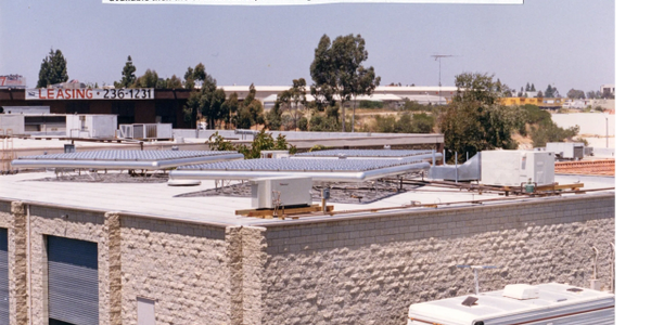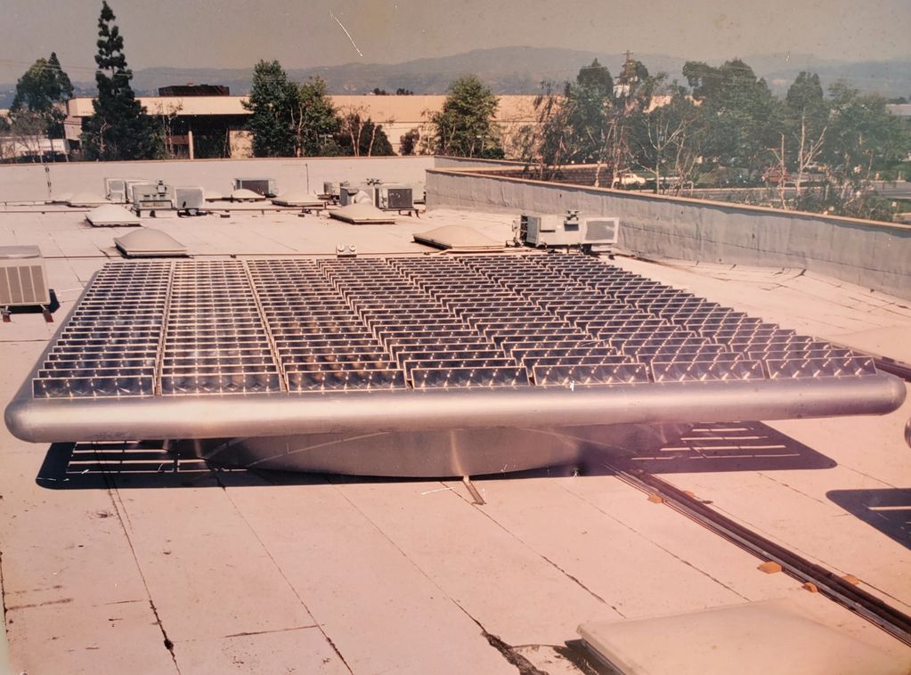 Close up photo of ETC (1) Megawatt 100 meter wide 1000 x Fresnel Lens HCPV Concentrators producing electricity and hot water for on-site farming utilization and the sale of power to electric utilities.